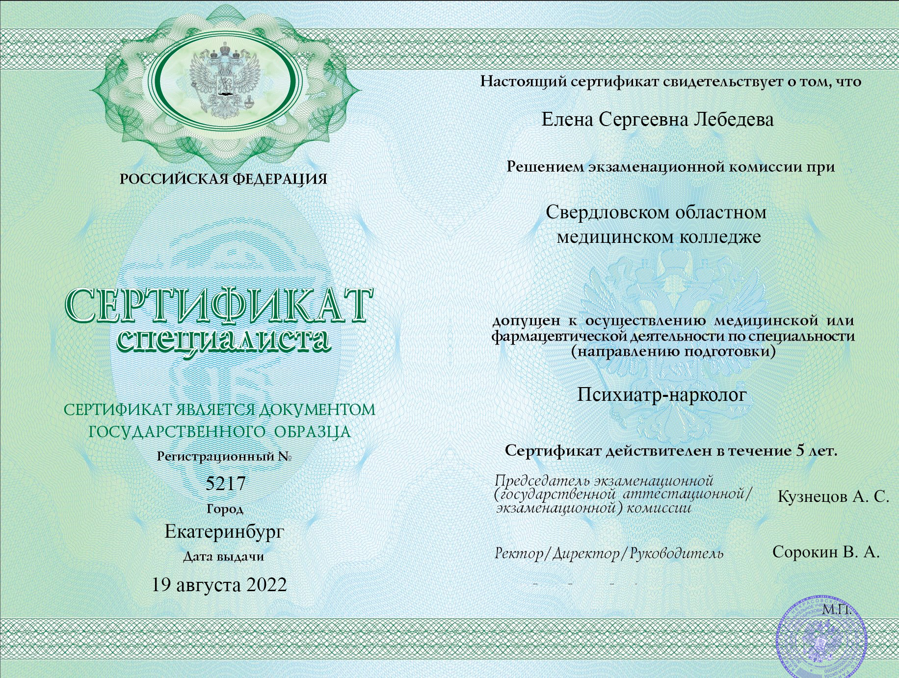 Елена Сергеевна Лебедева врач нарколог клиники доктора Стукаловой в Арзгире